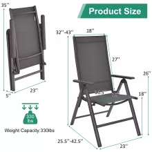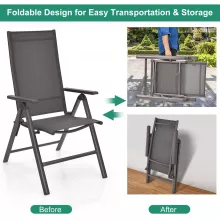 Lightweight yet strong, these folding patio chairs move effortlessly from the garden to the campsite, balcony, or beach. Their sleek, modern design complements any outdoor setting, adding a touch of style to your patio, deck, or poolside area.
