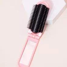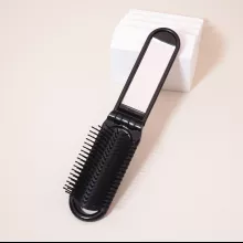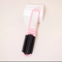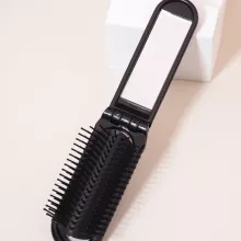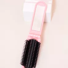 Folding Travel Mirror Hair Brush – Compact Detangling & Massage Brush