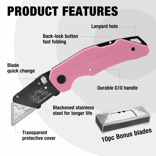 Unlike standard cutters, this folding utility knife combines practical design with high-performance materials. The G10 handle ensures a secure, non-slip grip even during extended use, while the back lock mechanism keeps the blade safely in place. Switching blades takes only seconds thanks to the quick-change system, so you can stay focused on the job without interruptions. Compact and foldable, it easily fits in your pocket or tool belt, making it an everyday essential for both home and work.