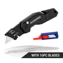 Folding Utility Knife with Quick Change Blades and 10 Extra Blades Included
