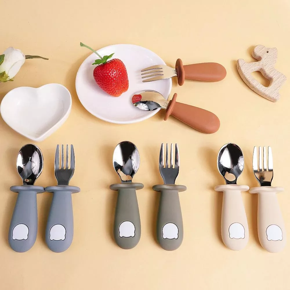 Food Grade Silicone Panda Fork & Spoon Set for Toddlers – BPA Free Baby Tableware
