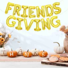Order your Friendsgiving Gold Foil Letter Balloon Banner today and celebrate the spirit of friendship in style. Make this Thanksgiving truly special with decorations that reflect the joy of gathering together!