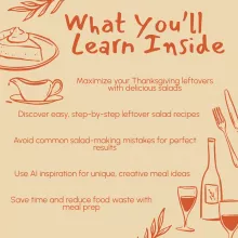 - Meal Prep Made Easy: Learn how to turn leftovers into easy-to-prepare salads perfect for the week ahead.