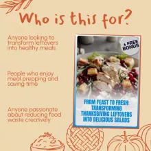 What sets “From Feast to Fresh” apart from other digital resources is its unique combination of expert tips, AI-inspired recipe ideas, and practical advice for transforming leftovers into fresh salads. Plus, the guide goes beyond just salad-making to include meal prep, creative uses, and common mistakes to avoid. It’s a comprehensive, no-waste solution for turning your holiday feast into new and exciting meals.