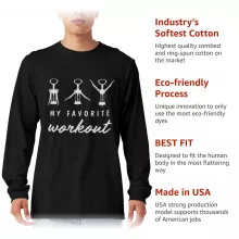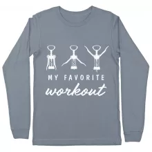 Funny Wine Long Sleeve T-Shirt is proudly made with 7x less water than average manufacturers, in recycle-friendly facilities that also guarantee zero sweatshop conditions. Wine Workout T-Shirt is designed and printed in California.