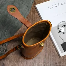 The sleek barrel-shaped design and geometric pattern add a touch of sophistication, while the soft leather texture ensures comfortable wear throughout the day. With just the right amount of space to carry your essentials — phone, wallet, keys, and a few extras — this bag proves that good things come in small packages.