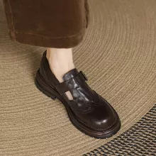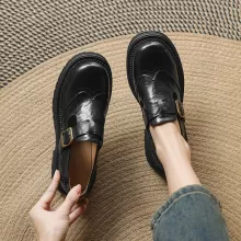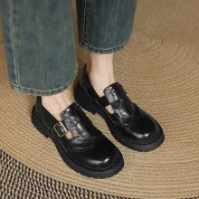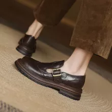 What truly sets these shoes apart is their refined handmade touch and the elegant buckle strap, which not only enhances the fit but adds a subtle vintage charm. Available in versatile shades of black and brown, these loafers are a wardrobe essential that will never go out of style.