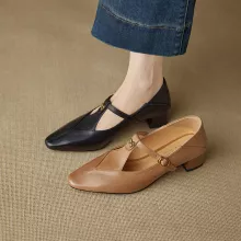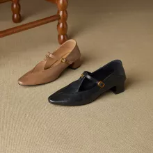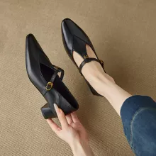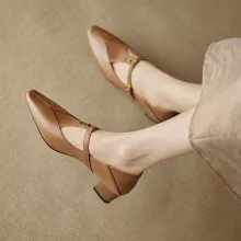 The soft leather upper and lining offer a glove-like feel, while the cushioned sheepskin insole gives your feet the comfort they deserve. The secure buckle strap keeps your feet in place, and the low 1.18-inch (3 cm) heel gives you just the right amount of lift for everyday elegance. With their classic silhouette and solid color design, these shoes easily pair with dresses, skirts, jeans, or tailored pants, making them your new go-to for both spring and autumn.