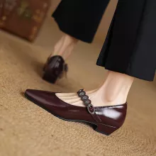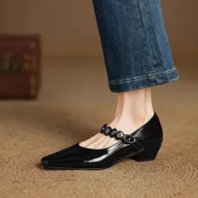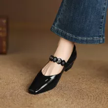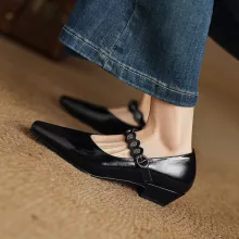 Made from high-quality cow leather uppers and lined with buttery-soft sheepskin, these pumps deliver luxury from the inside out. The square toe design adds a modern twist, while the chunky 1.2-inch heel gives just the right lift without compromising stability. A sleek buckle strap adds a graceful finish and keeps your feet securely in place.