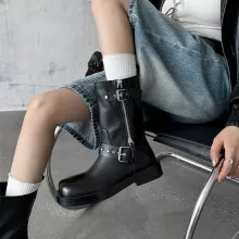 Step into classic British-inspired fashion with these Genuine Leather Mid-Calf Boots — a perfect blend of timeless style, durability, and comfort. Designed for the modern minimalist, these boots feature a sleek round toe, a chic belt buckle detail, and a low square heel that delivers subtle elevation without compromising ease. Crafted from premium split leather with a genuine leather upper, these boots offer a clean, solid finish that effortlessly pairs with everything from jeans to skirts.