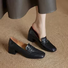Crafted with premium quality leather, these mid-heel loafers offer not just style, but long-lasting comfort. The 1.57-inch (4 cm) hoof heel gives just the right lift while remaining supportive enough for all-day wear. Whether you’re headed to a casual brunch, a business meeting, or just strolling through the city, these shoes are designed to keep you confident and comfortable.