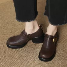 Step into refined style this season with our Genuine Leather Women’s Chunky Heel Pumps — the perfect blend of timeless charm and modern flair. Designed for the cooler months of spring and autumn, these loafers offer a classic silhouette with a contemporary twist, featuring a round toe, a sleek side zip, and a minimalist belt buckle detail that adds a touch of understated elegance.