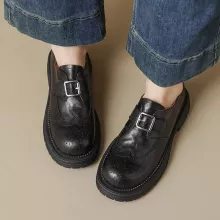 Made with premium sheepskin leather uppers and pigskin lining, these shoes exude quality inside and out. The sturdy TPR sole and 1.57-inch (4 cm) chunky square heel offer reliable support for all-day wear without compromising on style. The stylish buckle strap adds a touch of refinement while ensuring a secure fit. Available in timeless black or white, these versatile loafers pair beautifully with dresses, trousers, and jeans alike.