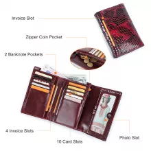 Experience the perfect combination of elegance and practicality with this genuine cowhide leather long clutch wallet designed for women. Featuring a sleek serpentine pattern, this wallet offers a sophisticated look while providing plenty of space for your essentials. Whether you’re headed to work, a social event, or everyday errands, this wallet keeps your valuables organized and protected with a secure hasp closure and RFID-blocking technology.