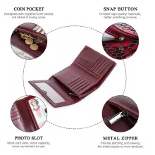 Made from premium genuine leather, this wallet is built to last and feels luxurious to the touch. Measuring approximately 4 inches wide, 6 inches tall, and just 1 inch thick, it fits comfortably in your hand or handbag. Inside, you’ll find multiple compartments including a cell phone pocket, zippered pouch, coin pocket, note compartment, photo holder, and card slots, ensuring everything has its place and is easy to access.