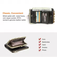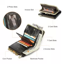 • Compact yet spacious: Multiple compartments for coins, cards, notes, and photos.