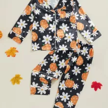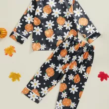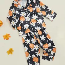 Bring the magic to bedtime with this adorable Girls Pajama Set. Designed with a playful mix of pumpkins, and floral patterns, this charming two-piece set blends festive fun with cozy comfort. The soft, lightweight fabric feels gentle against the skin, while the long sleeves and full-length pants keep your little one warm and snug through cooler autumn nights.