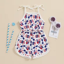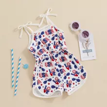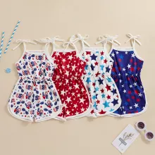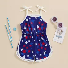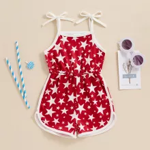 Dress your little girl in this adorable sleeveless jumpsuit designed for warm weather comfort and easy style. Featuring tie-up spaghetti straps and a charming star print, this romper is a perfect pick for summer playdates, family outings, or festive 4th of July celebrations. The soft fabric moves with her, while the adjustable straps ensure a comfortable fit as she grows from toddler to early childhood.