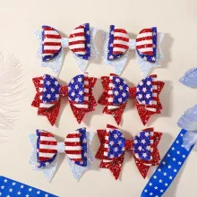 Looking for a fun and fashionable way to complete your child’s 4th of July outfit? These glitter bow hair clips are the perfect patriotic accessory. They’re also great for gifting or stocking up for party favors if you’re buying wholesale.