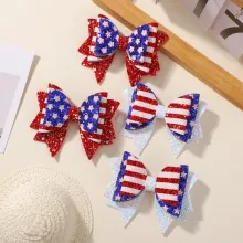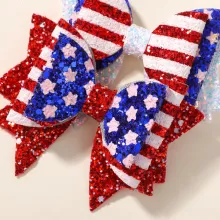 Make your child shine at any patriotic celebration with our 2-piece Glitter Bow Hair Clips set – the perfect finishing touch for an unforgettable Independence Day look. Designed with fun and fashion in mind, these eye-catching barrettes blend bold American style with a touch of sparkle, ideal for party-ready girls who love to stand out.