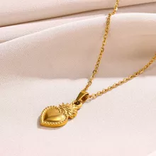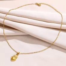 Crafted from high-quality gold-colored stainless steel, this necklace features a clean, geometric heart pendant that balances elegance and contemporary fashion. Its sleek, slide-style pendant rests beautifully on a fine link chain, making it the ideal everyday accessory. The metal is resistant to tarnishing and fading, offering you a low-maintenance piece that stays radiant wear after wear.