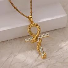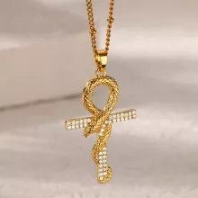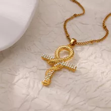 More than just a necklace, this piece is a conversation starter. The serpent symbolizes transformation and strength, while the cross represents balance and resilience—together, they form a powerful emblem of bold femininity. Crafted from high-quality stainless steel and accented with a brilliant white zircon, it offers durability with a luxe look. Plus, it’s free from high-concern chemicals, making it safe for all-day wear.