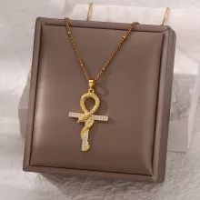 The pendant features a unique geometric snake-wrapped cross design, resting on a trendy choker-style chain. The high-polished stainless steel provides long-lasting wear, while the white zircon stone adds just the right amount of sparkle. Lightweight, durable, and hypoallergenic, this fashion-forward accessory makes a great gift for a best friend or a stylish treat for yourself.