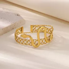 Designed with durability and flair in mind, this cuff bangle brings together premium materials and striking aesthetics. Its polished gold-tone stainless steel construction offers a luxe finish without the fuss. The minimalist yet bold snake silhouette adds a sense of mystique and sophistication that flatters any wrist. And with no setting or stones, the design remains clean, versatile, and easy to pair with other pieces.