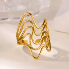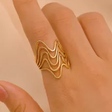 Crafted from high-quality stainless steel and finished with luxurious 18k gold plating, this ring is both durable and timeless. The multilayer wave pattern creates a fluid, modern look, while the open-ended design allows for easy adjustment and all-day comfort. With no harsh chemicals used in production, you can wear it with peace of mind knowing it’s safe for your skin.