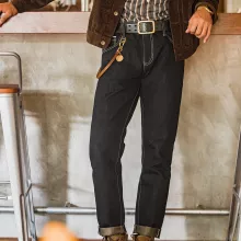 Designed with a classic straight-leg cut and a high-rise waist, they offer both comfort and structure. The premium denim blend—73.5% cotton and 26.5% polyester—feels soft yet durable, perfect for daily wear throughout the autumn months. Every rivet and button is gold-plated, adding a luxurious edge that sets these jeans apart from the rest. The eye-catching golden embroidery further enhances their vintage appeal, giving your wardrobe a touch of sophistication that’s hard to ignore.