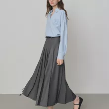 This ankle-length pleated skirt is crafted from a premium blended fabric of polyester and viscose. The fabric offers a refined drape without clinging, giving you a clean, elegant look with every step. The natural waistline creates a flattering silhouette, while the A-line cut adds subtle volume that’s both stylish and comfortable. With no stretch, it maintains its structured shape, giving you a polished appearance all day long.