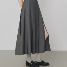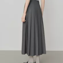 Gray Pleated A-Line Long Skirt for Women – Retro Office Chic Style