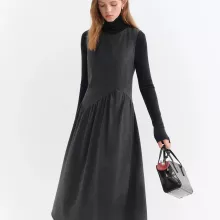 This gray sleeveless A-line dress is the definition of effortless sophistication. Designed for cooler seasons, it blends classic French-inspired style with modern comfort, giving you a polished look without trying too hard. The soft wool-blend fabric drapes beautifully over the body, creating a flattering silhouette that moves naturally with you. Whether you’re heading to brunch, the office, or an evening gathering, this dress adds an instant touch of elegance to your outfit.