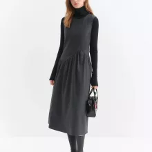 This dress is ideal for autumn and winter wear. Pair it with a cozy coat and boots for a casual day out, or layer it over a blouse or knit top for a chic office look. Its elegant structure also makes it perfect for dinners, coffee dates, and seasonal events when you want to look put-together without looking overdone.