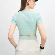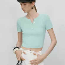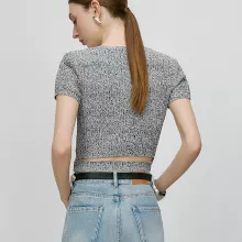 Make this slim fit knitted tee your new go-to piece for effortless elegance. Whether you’re dressing it up for work or keeping it casual for a lunch date, this chic essential fits seamlessly into your wardrobe. Add it to your cart and experience the perfect blend of comfort and class.