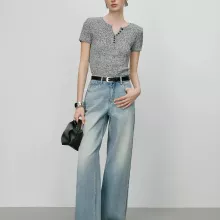 This premium knit tee is designed to flatter. Its slim fit gently hugs the body, while the round neckline and short sleeves offer a timeless cut that complements both workwear and weekend styles. The subtle button detail adds just the right amount of interest, giving this top a polished, contemporary finish.
