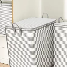 Discover a simple, stylish way to keep your home neat and clutter-free with this Grey Striped Zippered Storage Bag. Designed for anyone who values clean, organized spaces, this large-capacity bag offers a practical solution for storing clothes, bedding, toys, seasonal items, and more. With its modern striped look and durable polyester fabric, it blends seamlessly into any room while keeping your belongings well protected.