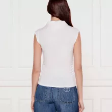 Bring timeless sophistication to your wardrobe with the Guess Women’s Sleeveless Turtleneck Top – a sleek and stylish essential made for spring and summer. Designed with a clean, minimalist aesthetic, this versatile white top seamlessly blends comfort with fashion-forward appeal, making it your go-to piece for sunny days, casual outings, or layering under blazers and jackets for elevated looks.