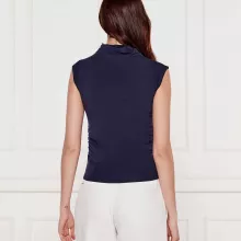 Crafted from a premium blend of 95% cotton and 5% elastane, this top offers a soft, breathable feel with just the right amount of stretch. The sleeveless design allows for cool, unrestricted movement, while the turtleneck adds a chic twist, perfect for creating effortless yet polished outfits.