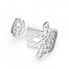 The Hamsa Hand, a revered symbol in various cultures, represents divine protection and spiritual strength. Known for its powerful connection to warding off the Evil Eye, this symbol has deep roots in the Middle East and North Africa. With influences from Jewish, Christian, Islamic, and even Pagan traditions, the Hamsa Hand also symbolizes fertility, good fortune, and blessings. Paired with the delicate lotus flower, which represents purity and spiritual enlightenment, this ring serves as a meaningful talisman to protect and inspire its wearer.