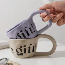 Enhance your morning routine with our Handmade Creative Alphabet Ceramic Mug. Perfect for sipping coffee, tea, juice, milk, or water, this unique mug adds a touch of personality and elegance to your daily beverage ritual. Handcrafted with care, each mug features a solid beige, purple, or khaki pattern that stands out in any kitchen or office setting. The charming alphabet design makes it an excellent gift for couples, friends, or anyone who appreciates a personalized touch.