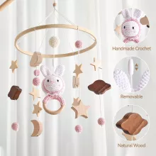 What makes this crib mobile truly special is the craftsmanship and thoughtfulness behind every detail. Each crochet rabbit is lovingly handmade, giving the mobile a unique, heartfelt charm. The soothing musical bell not only helps your little one drift off to sleep but also creates a calm bedtime routine. Lightweight, soft, and safe, it’s designed for everyday use from the very first days after birth through toddlerhood.
