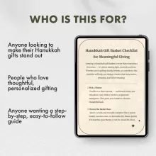 If you’re ready to create a Hanukkah gift basket that your friends and family will remember, this digital guide is the perfect starting point. Download the Hanukkah Gift Basket Checklist for Meaningful Giving now and begin crafting your one-of-a-kind holiday gift basket. It’s the perfect way to spread joy and light this Hanukkah season!