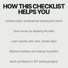 This checklist is ideal for beginners, DIY enthusiasts, students, busy professionals, and anyone who wants to learn how to hem your own pants the right way. It’s also great for creatives who want consistent results without digging through long tutorials.