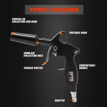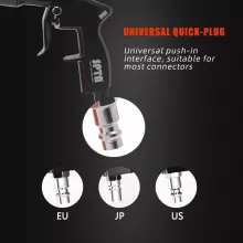 This cleaning spray gun is made from durable aluminum alloy for long-lasting performance and a lightweight feel. It features a large, dispersed airflow that stays stable even during extended use. The ergonomic handle is shaped to fit comfortably in your hand, making it easy to control while working around detailed areas. A standard quick-connect interface allows fast setup and reduces the risk of leaks or rust over time.
