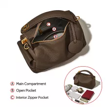 This chic cowhide leather handbag is designed to be as practical as it is stylish. Its barrel-shaped design provides generous space without compromising on sleekness. The interior is thoughtfully designed with several pockets, including a zipper pocket for securely storing valuables. You’ll love how easy it is to organize your belongings, making it perfect for busy days when you need to find your essentials quickly.