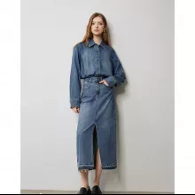High-Waist Denim Skirt with Split & Pockets – Autumn 2024 Collection