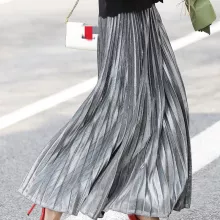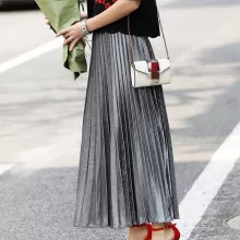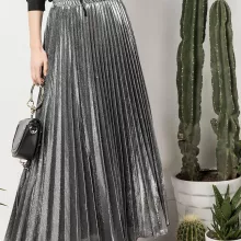Step out in style with this stunning high waist pleated maxi skirt that brings a perfect blend of modern fashion and timeless elegance. Crafted with a metallic sheen fabric, this skirt catches the light beautifully, making it an eye-catching choice for spring, summer, and beyond. The large swing design flows gracefully with every movement, creating a flattering silhouette that enhances your natural curves while offering comfort and freedom.