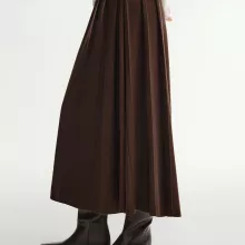 This skirt stands out because of its structured yet soft knit that holds its shape without feeling stiff. The pleated design adds texture and movement, while the natural high waist enhances your silhouette for a sleek, slimming look. Its ankle-length cut offers coverage and elegance, ideal for chilly days without sacrificing style.