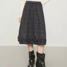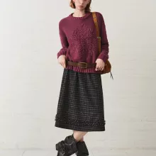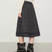 Unlike ordinary winter skirts, this piece combines classic tatting craftsmanship with a clean, modern cut. The empire waist visually elongates your legs, while the A-line shape suits a wide range of body types. Its thoughtful design, from the checkered pattern to the wooden buttons, makes it more than just a basic skirt – it’s a signature piece that brings personality to your winter wardrobe.